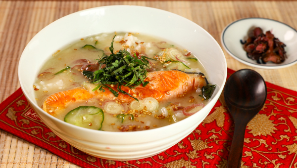 香ばしく焼いた境港サーモンを骨をとって切り身のまま贅沢にのせた冷や汁。ひと口ごとにほぐしながら味わえば、冷たいだしに鮭の旨みが広がります。味噌をだしで溶いて冷やし、きゅうり・みょうが・青じそ・白ごまを加えた冷や汁にサーモンをのせて、ごはんにかければ完成。暑い日にさらっといただける、夏のごちそうです。