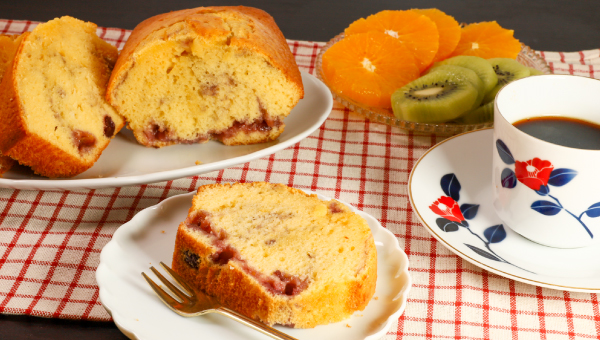ホットケーキミックスで手軽に作れるバウンドケーキ。果肉入りぶどうジャムを混ぜ込めば、甘酸っぱさとふんわり香る風味が広がります。切り口に果肉がのぞき、しっとり贅沢なケーキに。