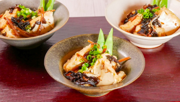 忙しい日にもさっと作れる、ごはんがすすむ一品。厚揚げときくらげ佃煮のさっと煮は、甘辛いきくらげ佃煮の味わいが厚揚げにじんわりとしみ込み、ごぼうやしょうがの風味がふわっと広がる、ほっとする味わいです。さっと煮るだけで味が決まり、ごはんのおかずにはもちろん、冷めても美味しいのでお弁当にもぴったり。忙しい日のもう一品にもおすすめです。