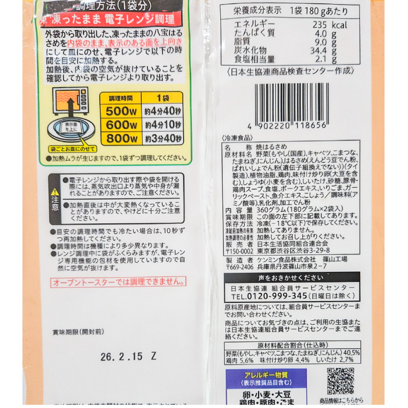 CO・OP 八宝はるさめ 2袋入(180g×2) 2025.04.11 イベント 夕食 家飲み 昼食 閲覧数:26 JAN:4902220118656保存方法:冷凍(-18℃以下)内容量:2袋入(180g×2) 調理のポイント 凍ったまま電子レンジで調理できます。外袋から取り出し、凍ったままの八宝はるさめを内袋ごと、表示面を上にして皿にのせてください。電子レンジで、裏面記載の時間を目安に加熱します。加熱後は、内袋の空気が抜けていることを確認してから、電子レンジから取り出してください。