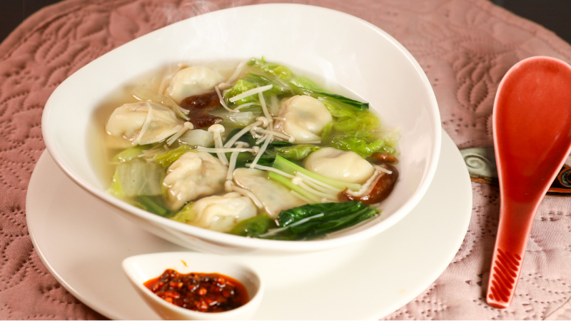 やさしい味わいのスープに、もっちりとした皮とジューシーな具が広がります。お好みで野菜やねぎを加えても。