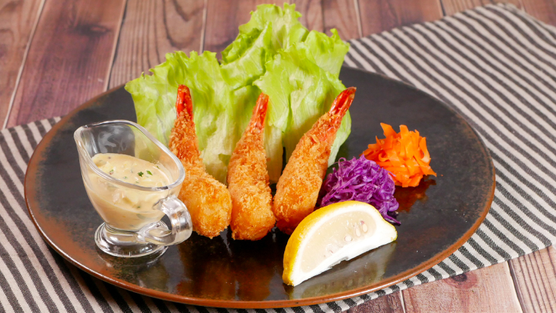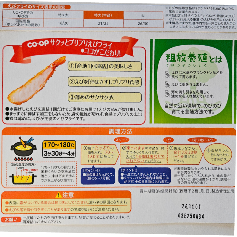 ポイント: ●一度にたくさん入れないこと。 ●えび同士がくっついている場合は、無理にはがさずそのまま油へ。