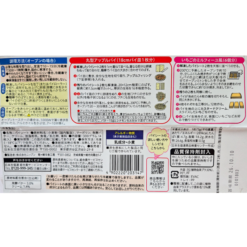 - パイの切り口に卵液がつくと、きれいにふくらみにくいので注意。