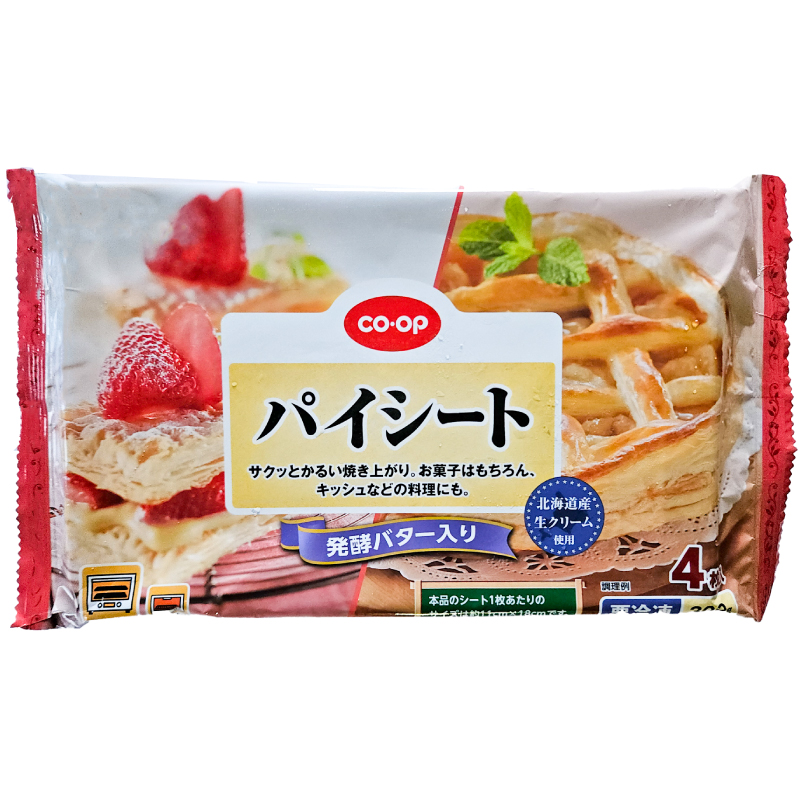- 解凍したパイシートを包丁やパイローラーで切り、好みの形に成形する。