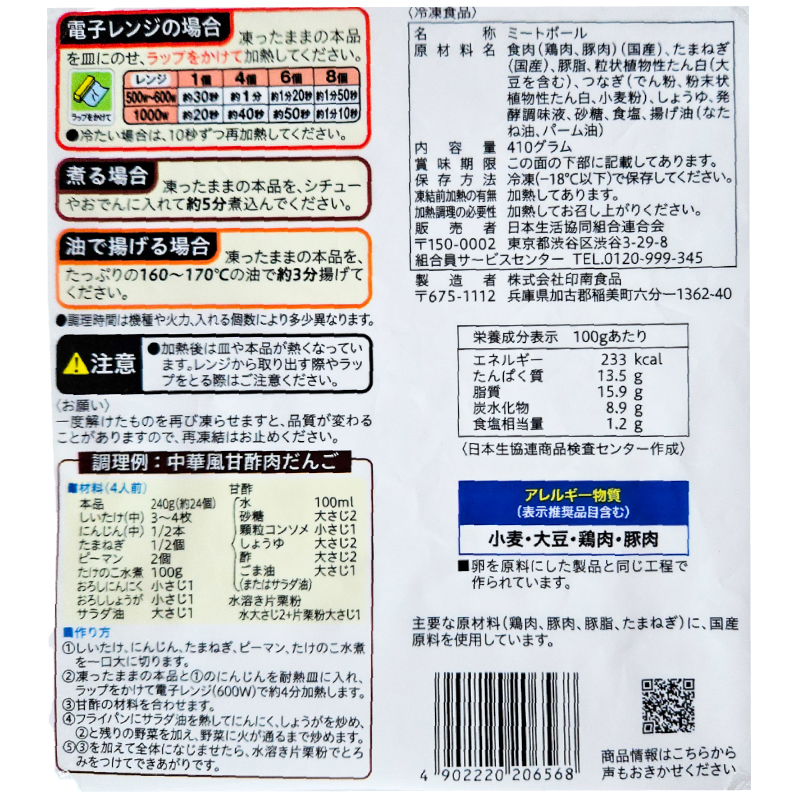 ・凍ったままの本品を皿にのせ、ラップをかけて加熱してください。